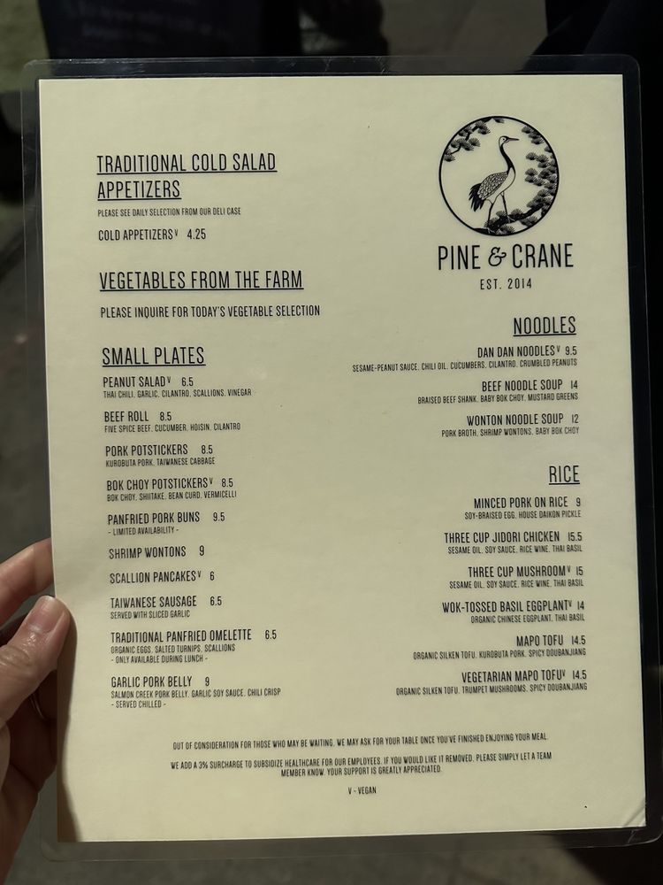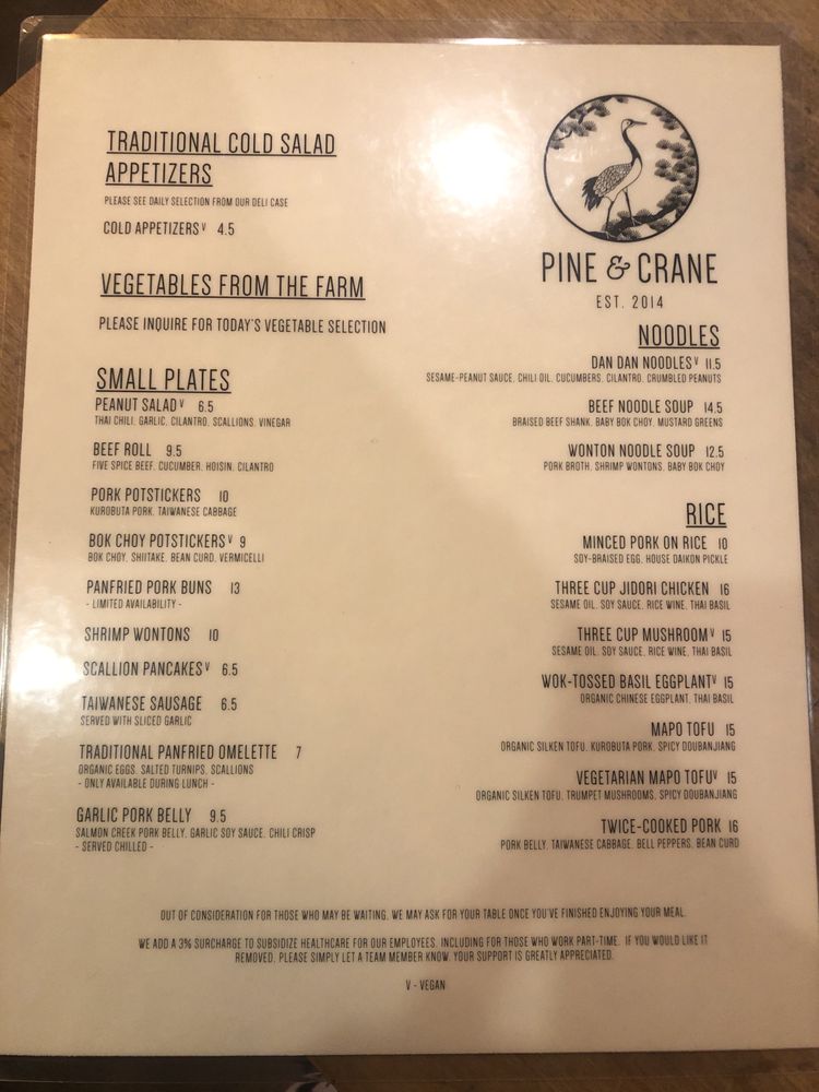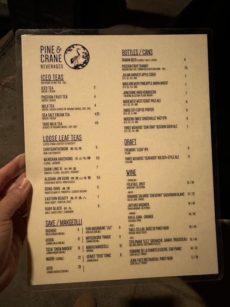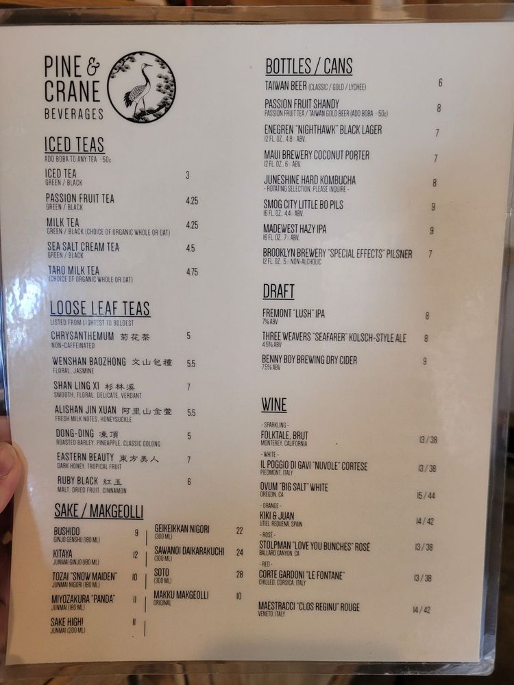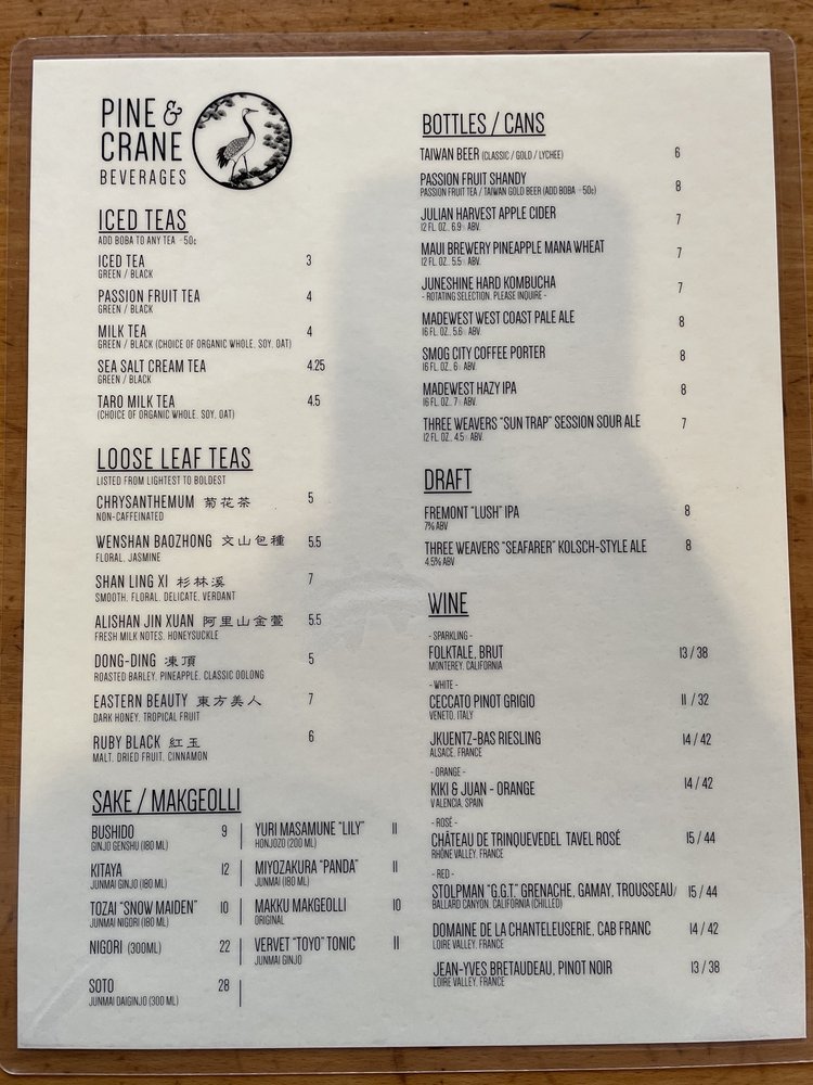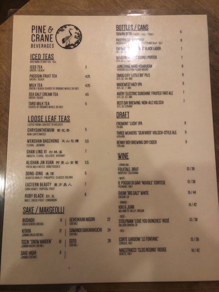 Pine & Crane Menu